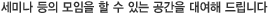¸¶Áö¸·À¸·Î, ¹Ìµð¾×Æ®ÀÇ ½Ã¼³À» ÃæºÐÈ÷ Ȱ¿ëÇϽʽÿÀ. 15ÀÎ Á¤µµ°¡ ¼¼¹Ì³ª µîÀÇ ¸ðÀÓÀ» ÇÒ ¼ö Àִ ȸÀǽÇ, 70¿© ¸íÀÌ ¸ð¿© ½Ã»ç¸¦ ÇÒ ¼ö ÀÖ´Â ´ë°ÀǽÇ,