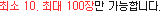 ÃÖÀú 10Àå(¶Ç´Â ±× ÀÌ»ó 10Àå ´ÜÀ§) ~ ÃÖ°í 100Àå