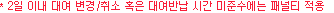 ´Ü, 2Àϳ»ÀÇ º¯°æ°ú Ãë¼Ò´Â ÁÖÀÇ ³»Áö °æ°í µîÀÇ ÀÏÁ¤ÇÑ Æä³ÎƼ°¡ Àû¿ëµË´Ï´Ù.