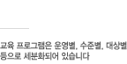 ¿µ¿ªº° ÇÁ·Î±×·¥À» Á¤±âÀûÀ¸·Î ¹èÄ¡ÇÏ¿© ±³À° ÀÌ¿ëÀÚÀÇ Çʿ信 µû¸¥ ±³À°À» Á¦°øÇÒ ¼ö ÀÖ½À´Ï´Ù. |